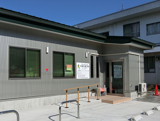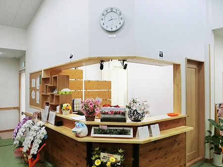 当クリニックの入口です。車いすの方でも来院しやすいよう、